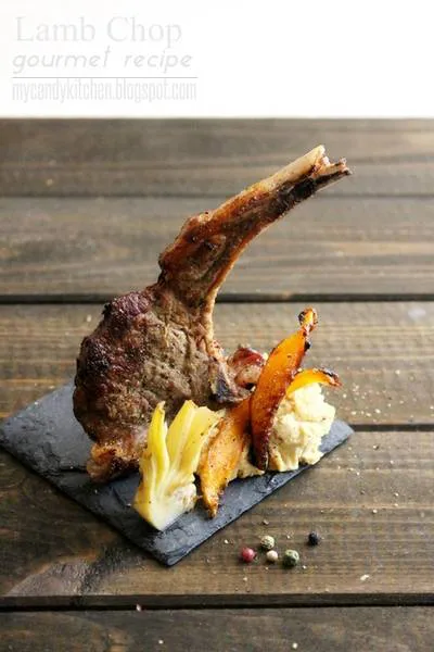 Агнешки котлет с чипс от моркови, артишок и пастет от нахут