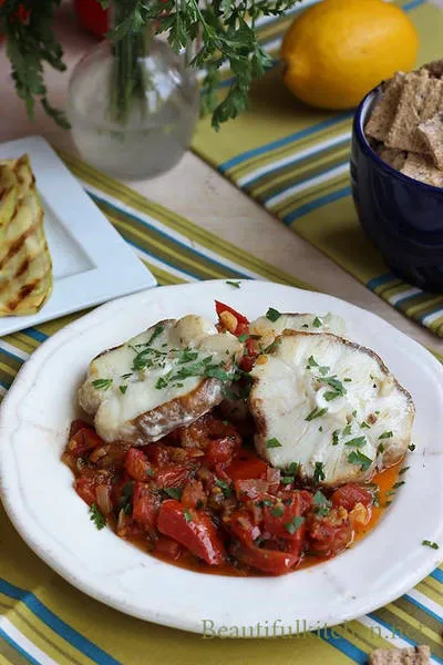 Месото от акула е с добри вкусови качества, но е сухо и затова реших да го приготвя на тиган с апетитен доматен сос.