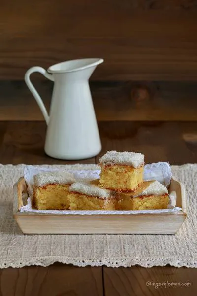 Ароматен кокосов кекс със сочни парченца ананас и лимонова глазура. Кексът е пухкав и много приятен.