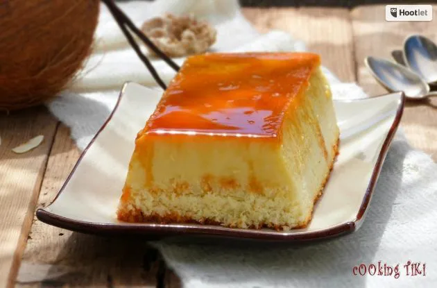 Десертът се разслоява при печенето. Кокосовите стърготини изплуват отгоре, при което долната част заприличва на крем карамел (но по-плътен), а горната на онези кокосово-шоколадови десертчета Баунти (Bounty).