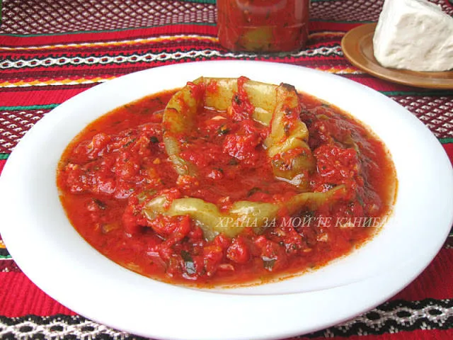 Пикантни чушки в доматен сос, както за разядка, така и да се нахраниш с тях през зимата