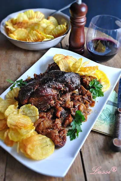 Бавно печена свинска плешка с горчица и ябълки