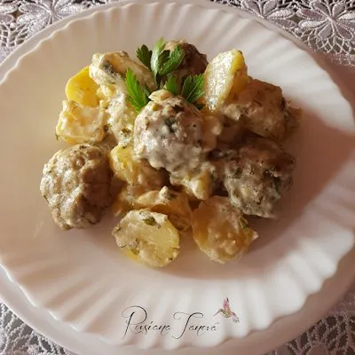 Билкови кюфтета с картофи и сметана