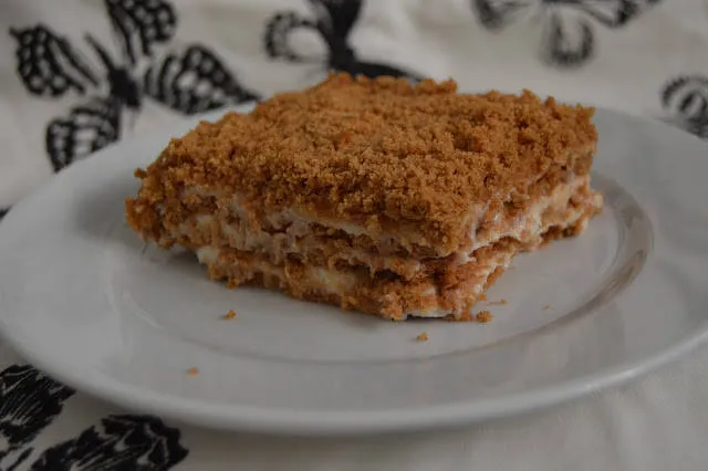 Една изключително ароматна, сочна и вкусна бисквитена торта с аромат на канела и много крем