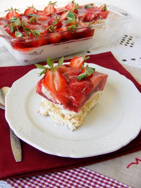 По желание може да украсите с 3-4 срязани на две ягоди и листенца мента.