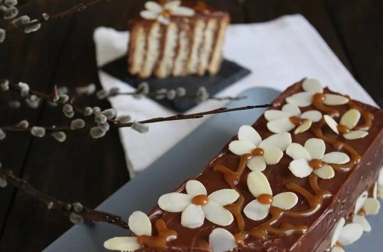 Съчетание от любими продукти, с пролетна украса и въпреки лесното приготвяне това руло е достойно за празнична трапеза.
