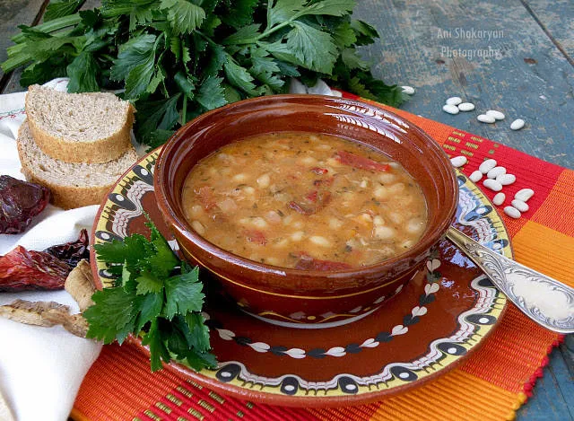 Обожавам българския боб и неизменно присъства в менюто ни. Разнообразих класическата рецепта като добавих малко запържени манатарки и бекон. Уютна, полезна и много вкусна храна е бобът. Особено подходящ за студените зимни вечери.