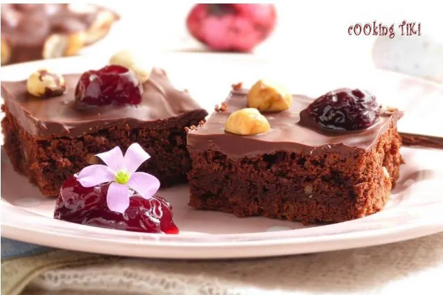 Проверена рецепта за шоколадово брауни, гарнирано с плодове от сладко