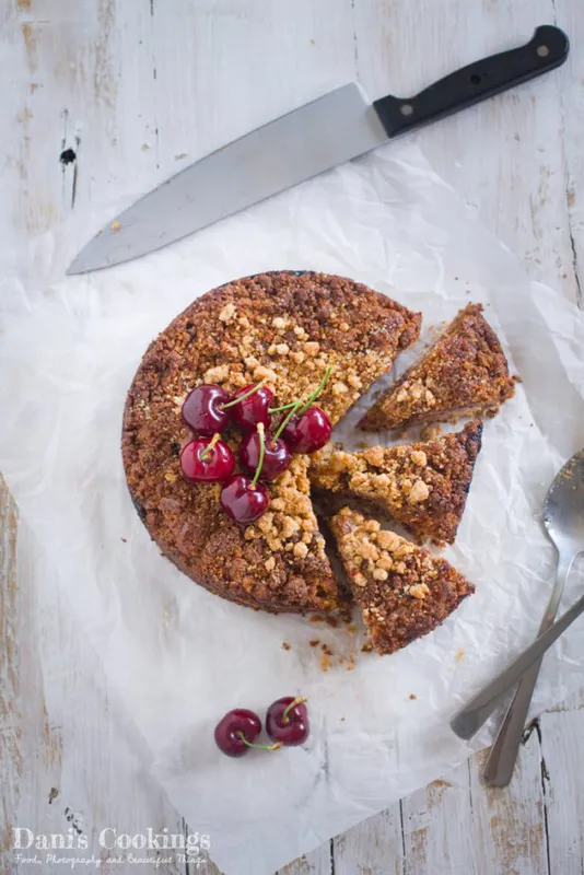 Тя е съставена от три пласта - кексова основа, череши и маслени трохи, които се пекат заедно. Освен това е сочна, хрупкава и пълна с аромати!