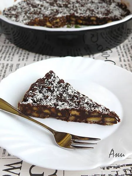 Бърза шоколадова торта с натрошени бисквити, без печене