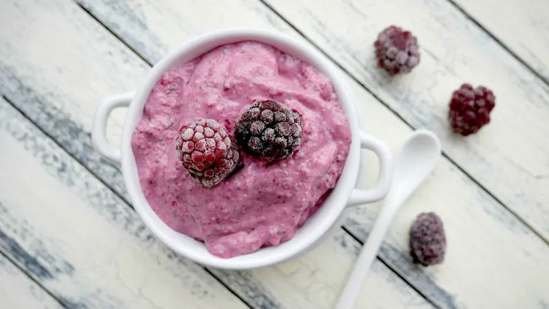 Бърза закуска: сладоледен мус с фибри и къпини
