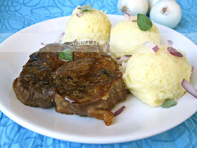 Пържоли с горчица и лук