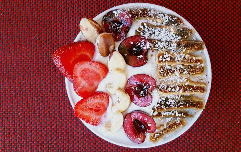 Йогурт с плодове, ядки и канела
