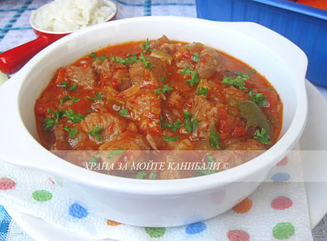 Една от най-вкусните рецепти от грузинската кухня - задушено до пълно омекване месо в доматен сос с много подправки и чесън. Сходно на нашата пилешка кавърма, но и различна заради специфичния аромат на кориандър в подправката хмели-сунели