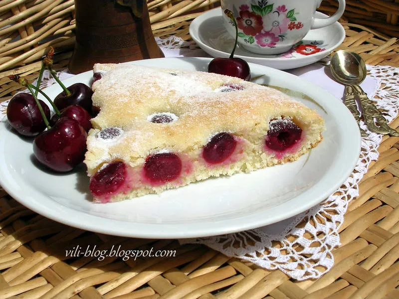Може да се използват всякакви меки плодове - малини, ягоди, праскови, кайсии, сини сливи, а от компотните най-сполучлив е с плодовете на кайсия, отцедени и подсушени. Сега обаче ви го предлагам с пресни и сочни черешки. Да ви е сладко!