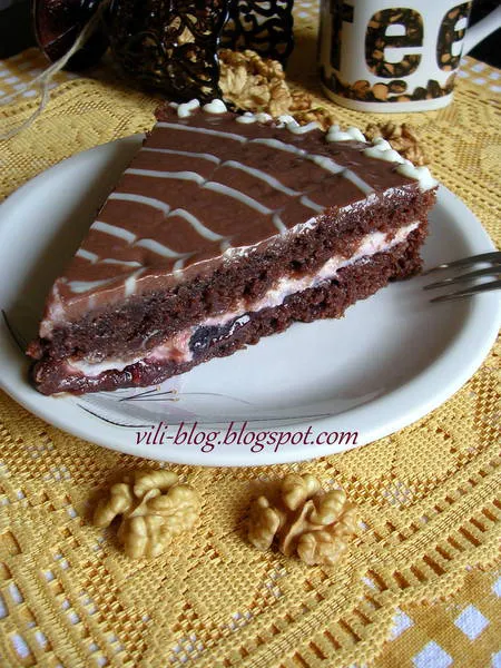 Черешова торта с майонезен блат и шоколадова глазура