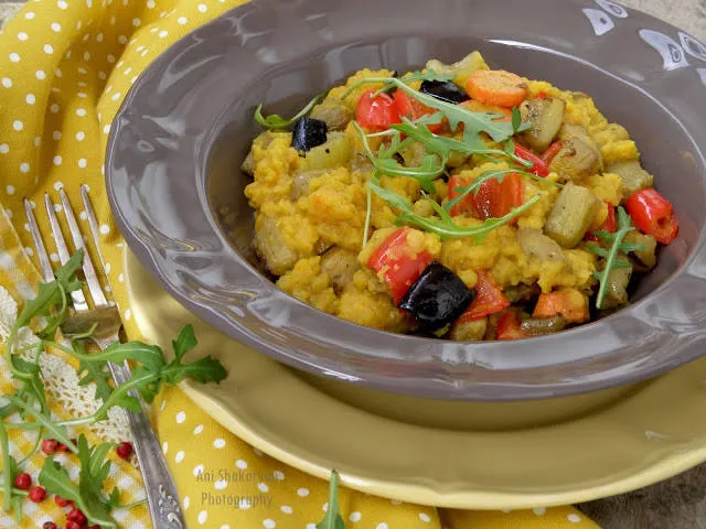 Червена леща с печени зеленчуци