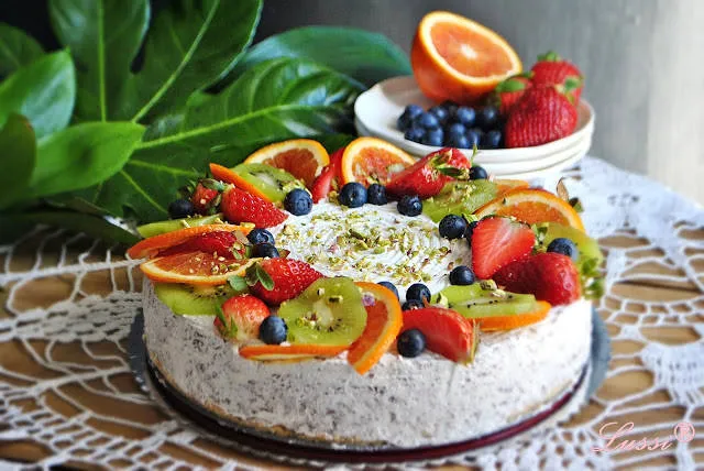Насъбрах каквото плод имаше на пролетния пазар и реших да направя едно свежо торте, тип "Чийзкейк" отново, без печене, без желатин, без грижи