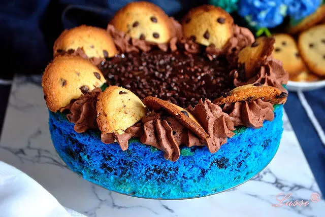Наистина е супер вкусна, креместа, и шоколадова торта, а и меките бисквитки не помагат да се въздържате особено. И да синя е, с хранителна боя