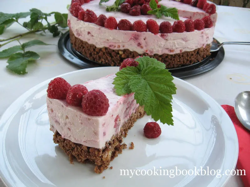 Класическата основа от пълнозърнести бисквити, масло и разстопен шоколад. Кремът е смес от крема сирене Филаделфия, сметана, пудра захар, желатин, ванилия и малини. Комбинацията може и да е семпла, но е впечатляващо вкусна!