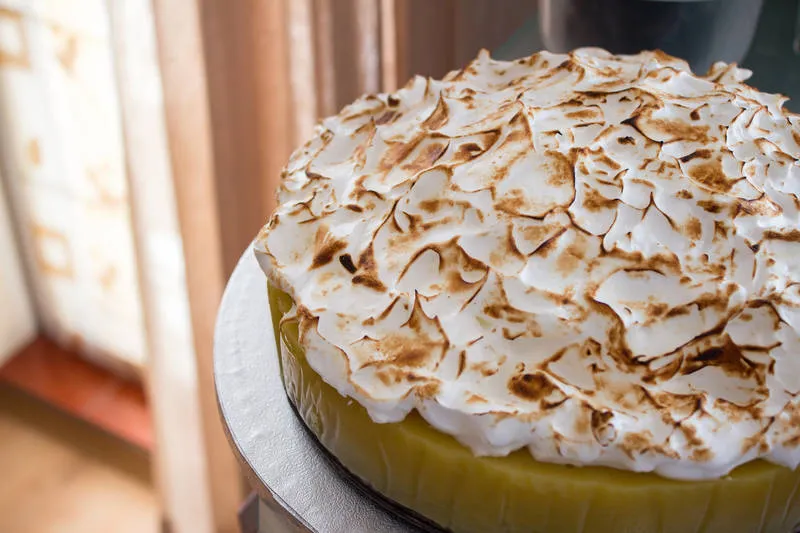 - използвах 4 разбити белтъка със захар, които обгорих с горелка.