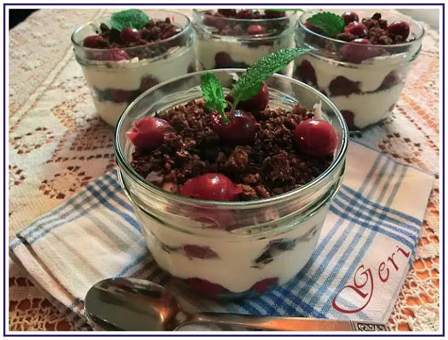 Десерт с извара и вишни