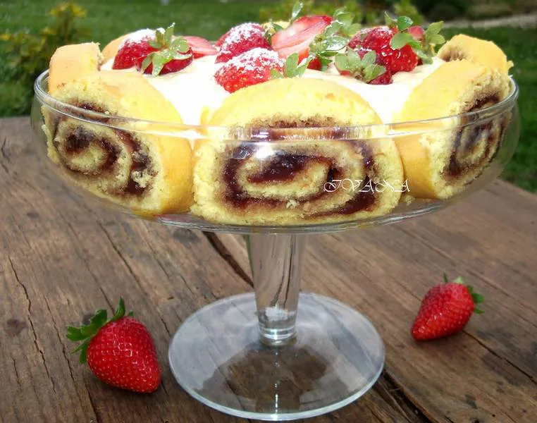Пандишпаново руло с ягодов конфитюр и яйчен крем