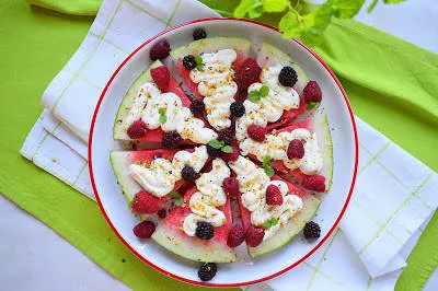 Един малко нетрадиционен начин накласическото съчетание диня и сирене. Лятно, много лятно предложение