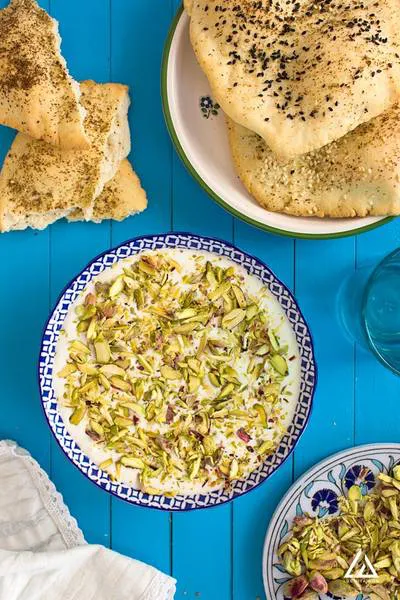 Дип от цедено кисело мляко със сирене и шам фъстък