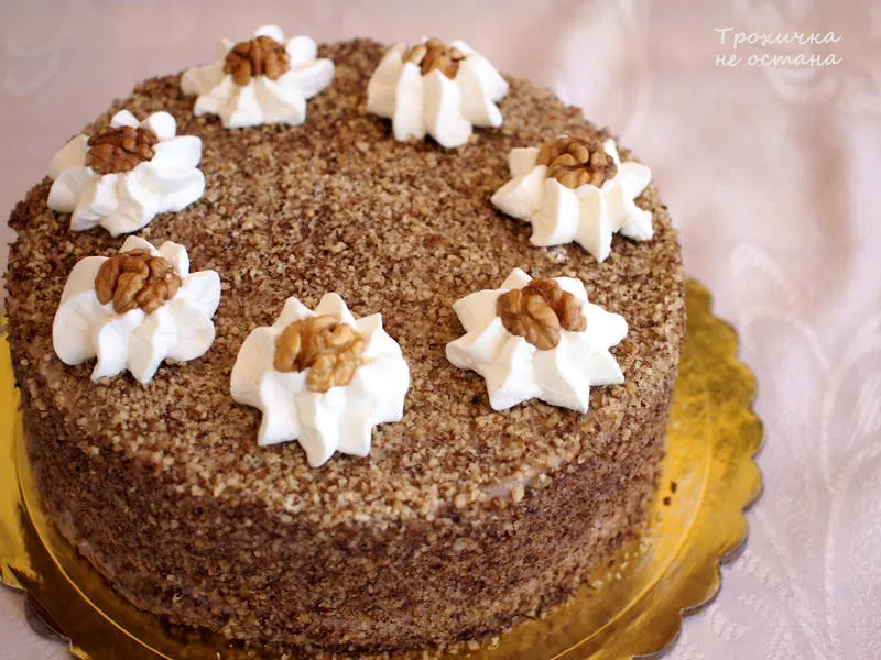 Добуш торта с карамелов крем и орехи