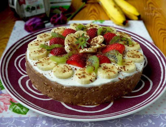 Рецептата за тази много вкусна торта знам от ученичка. Опитах я за първи път на гости на моя приятелка и от тогава я имам в тефтера си с рецепти. Впечатляваща е с това, че се приготвя без печене. Бърза, лесна и вкусна, домашна бисквитена торта с извара и плодове. Тортата е много добре балансирана като сладост, допълнена от лек крем от цедено кисело мляко и свежи плодове.