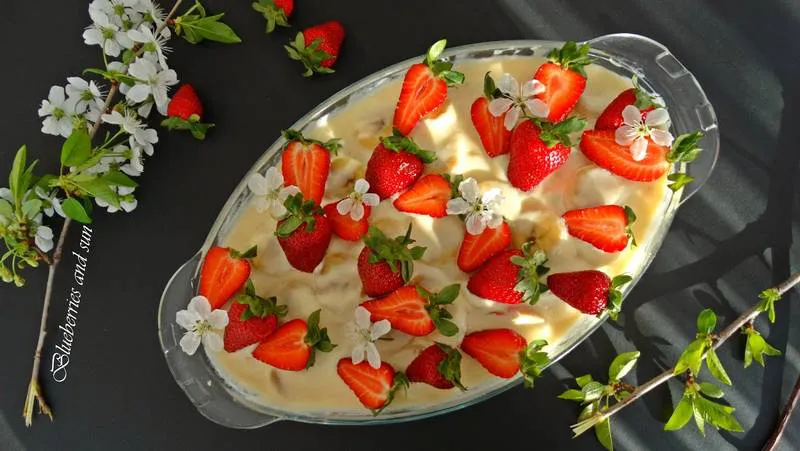 Тортата става много вкусна! Кремът е страшно лек, сладък и много ефирен. Накрая украсих с пресни ягоди за свежест.