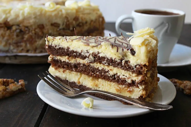 Изключително вкусна торта, съчетанието на кремовете с крокан и шоколадовият блат, тази чудесна глазура отгоре и елегантният външен вид са една страхотна композиция от вкус, финес и удоволствие.