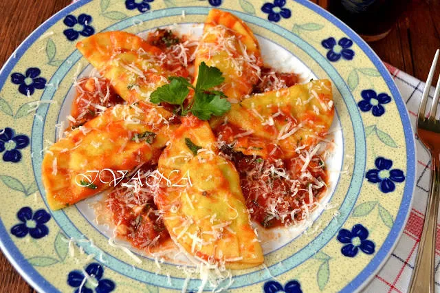 Ravioli fatti in casa con spinaci e ricotta al pomodoro