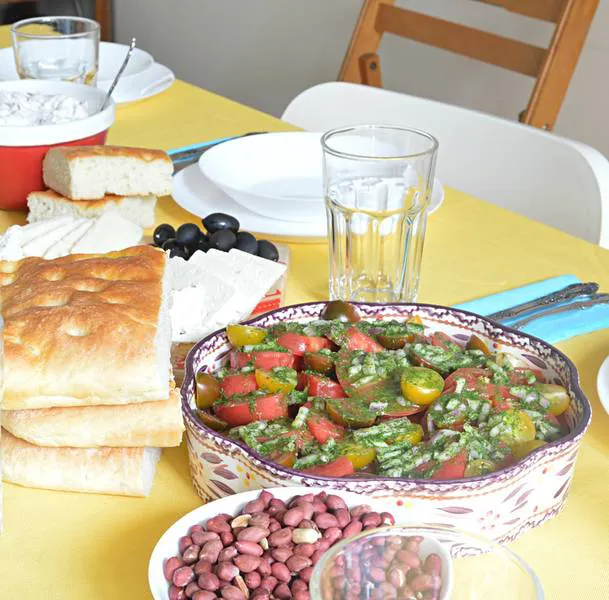 Салата домати с лесно и бързо песто