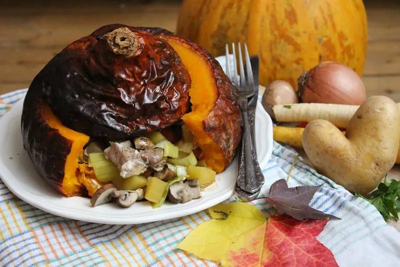 Чудесен ядлив съд е тиквата в която може да поднесете и гювеч