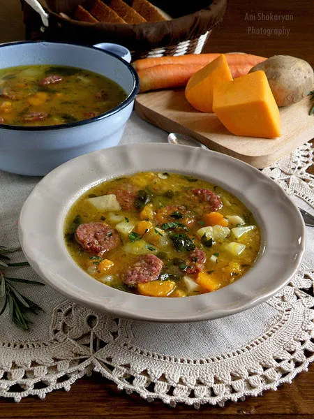 Една позната рецепта с наденица и зеленчуци, според сезона и предпочитанията, приготвена в мултикукър