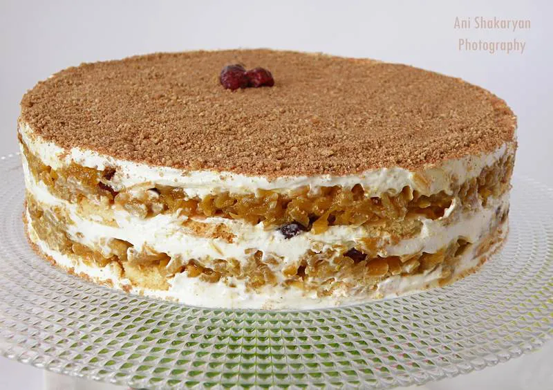 Тортата е букет от всички аромати на есента - тиква, ябълка, канела, джинджифил, индийско орехче, портокал. Ухае страхотно и не е много сладка.