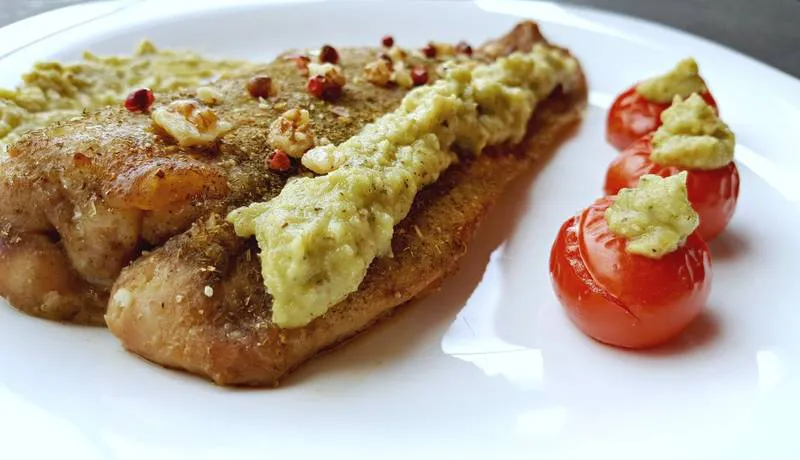 Печена ципура с песто от мента, зрял чедър и орехи пекан