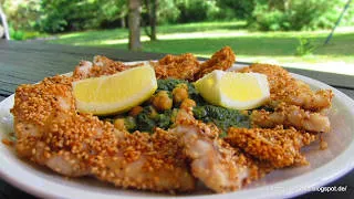 Филе от риба треска в сусамова обвивка и спанак с къри по индийски