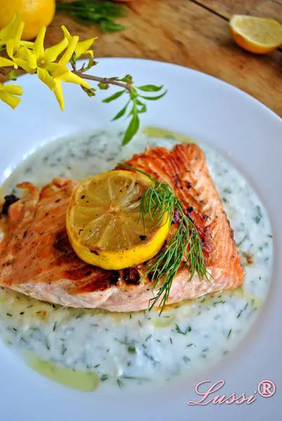 Филе от сьомга на грил със свеж лимоново-млечен сос