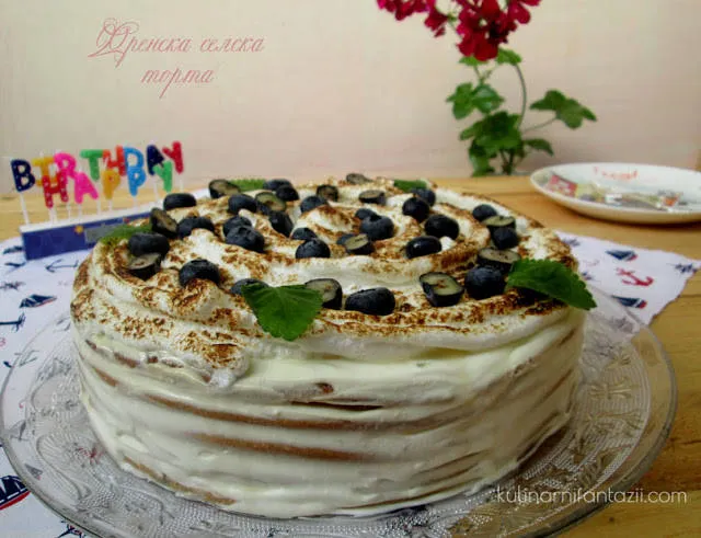Френска селска торта с боровинки и меренг