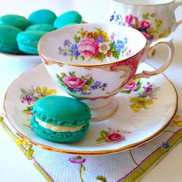Френски макарони с бял ментов ганаш и малини