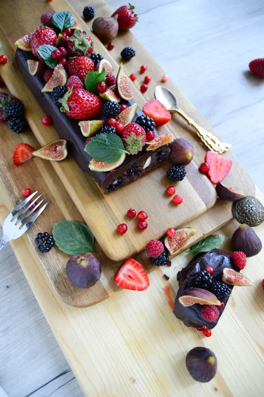 - ягоди, смокини, къпини, малини, червени боровинки за украса