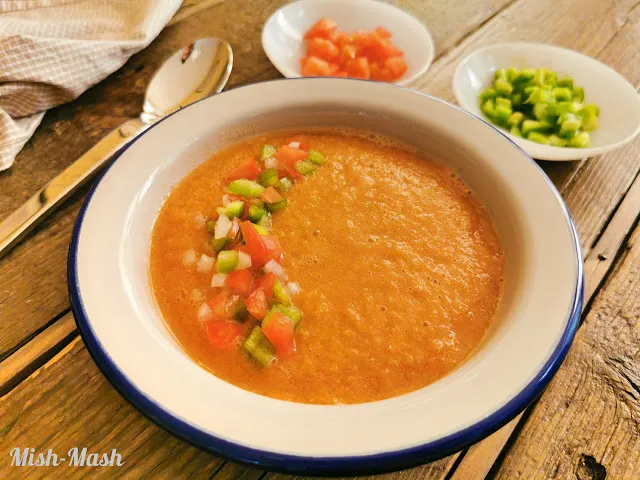 В това горещо време е чудесна идея да се хапват повече студени супи. Днес приготвих гаспачо (доматена супа) по рецепта на големия френски готвач Жак Пепен.