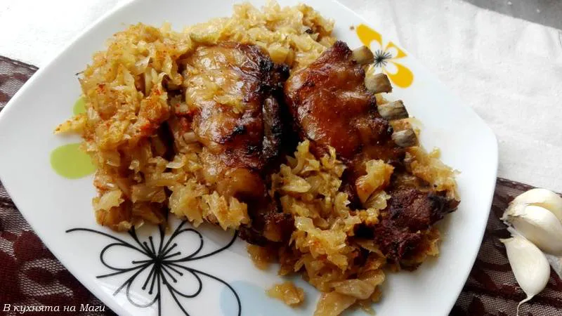 Глазирани агнешки ребърца с кисело зеле на фурна