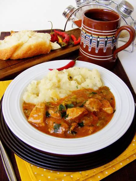 Няколко пъти приготвян, много вкусен и любим гулаш, рецепта от унгарската кухня. Подобен на традиционни за нашата кухня ястия - винен кебап и тас кебап. Сервиран с гарнитура от картофено пюре