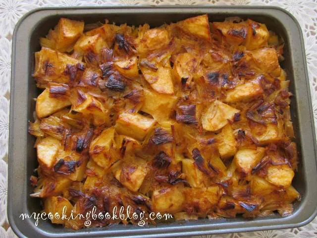 По рецептите на баба Баба го приготвяше през есента и зимата, когато има изобилие от праз лук прекрасни родопски картофи. Ползваше свинска мас и пръжки и се получаваше толкова вкусна манджа, че и заклет месояден би си хапнал с удоволствие.