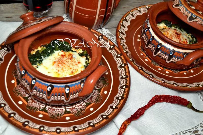 Гювечета със спанак, сирене и яйца