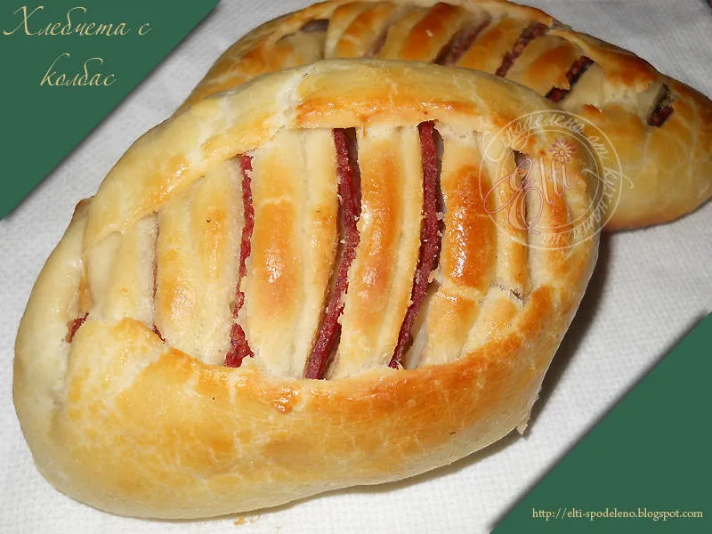Един по-различен начин на оформяне на хлебчета с колбас, тип "пантофка".